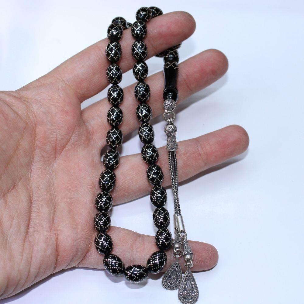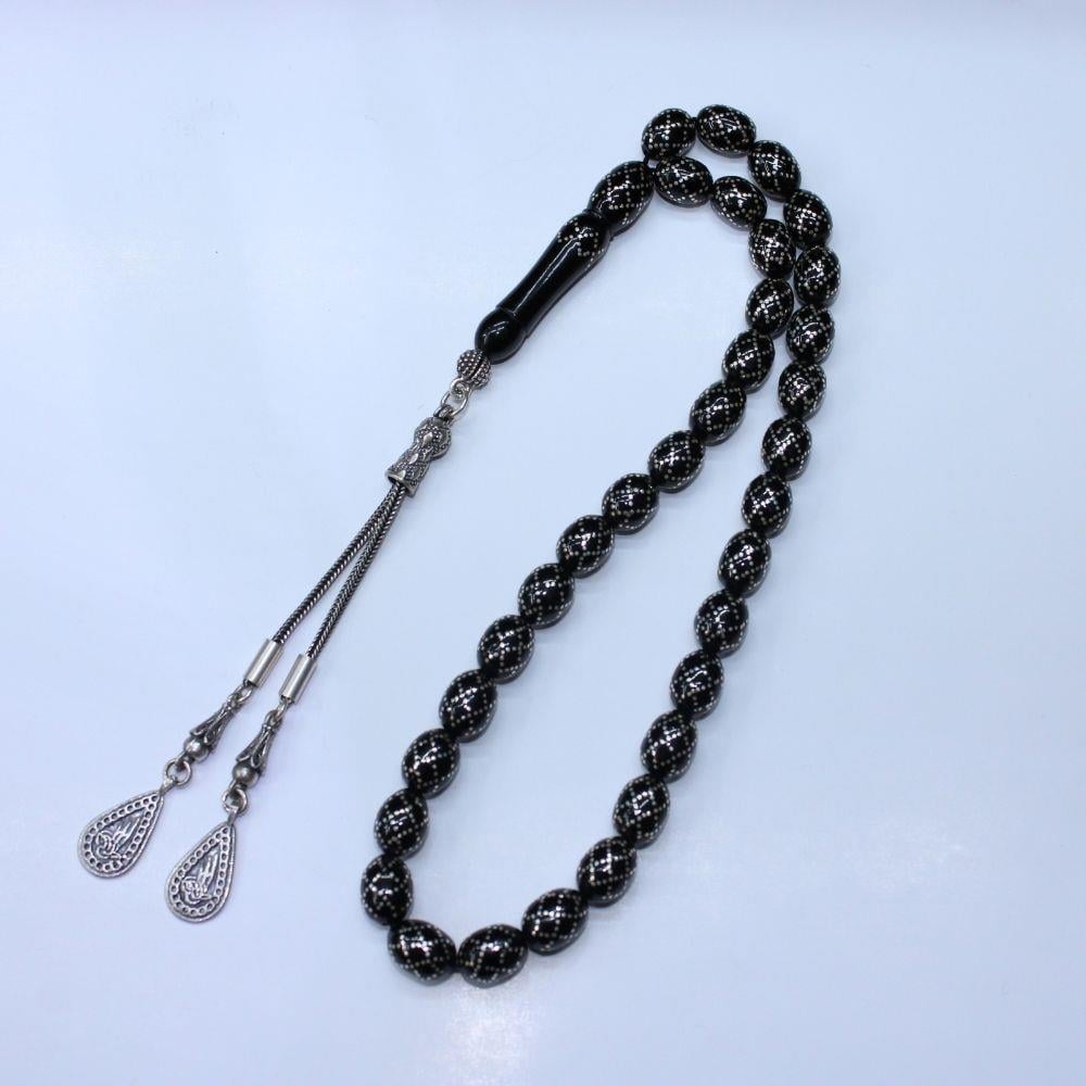 Örgü İşlemeli Oltu Taşı Tespih 8*10,5 (mm)