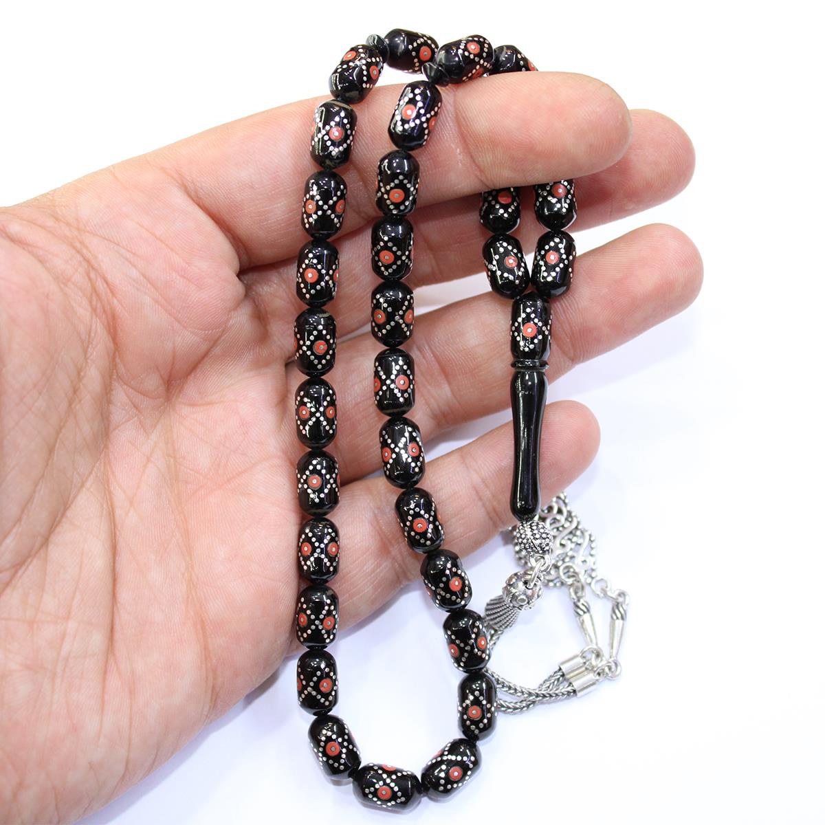 Örgü Mercan İşlemeli Oltu Taşı Tespih 6,5*10,5 (mm)