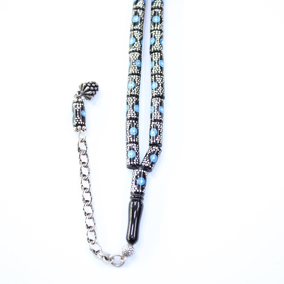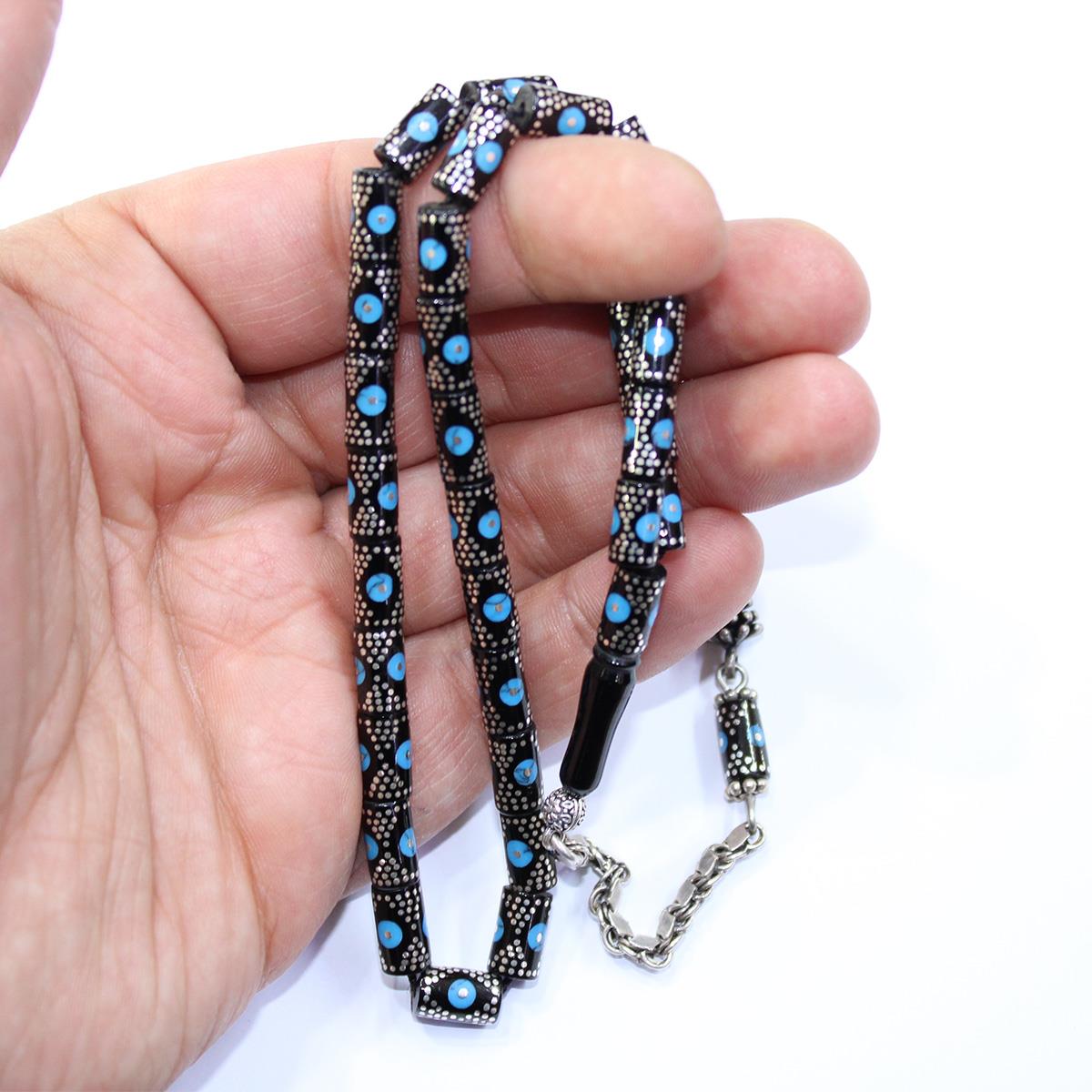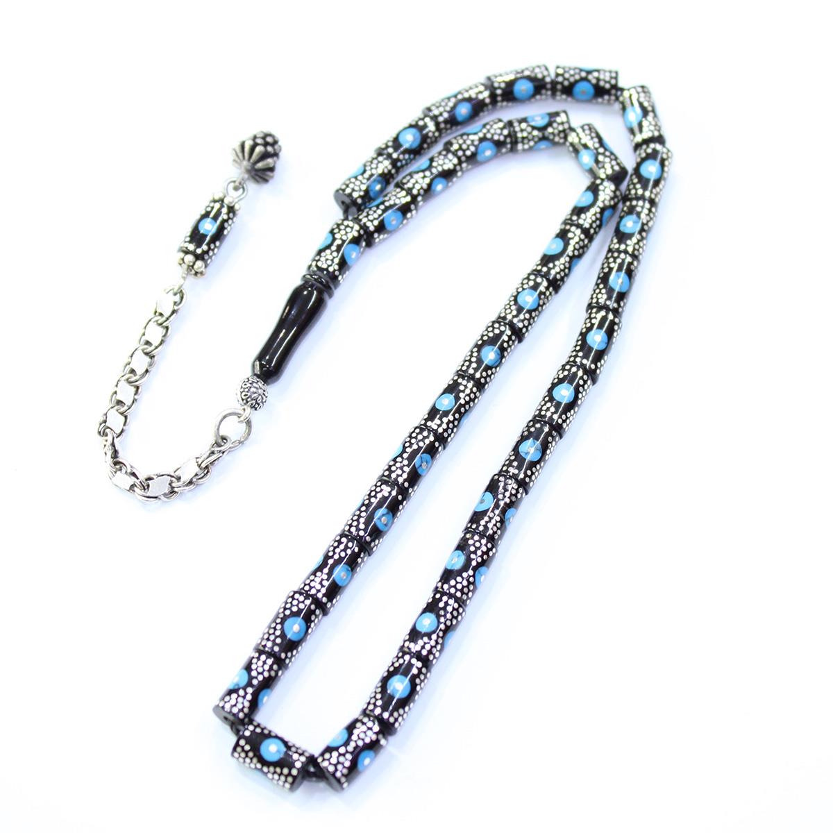 Papyon Firuze İşlemeli Kesme Oltu Taşı Tespih 5*9 (mm)