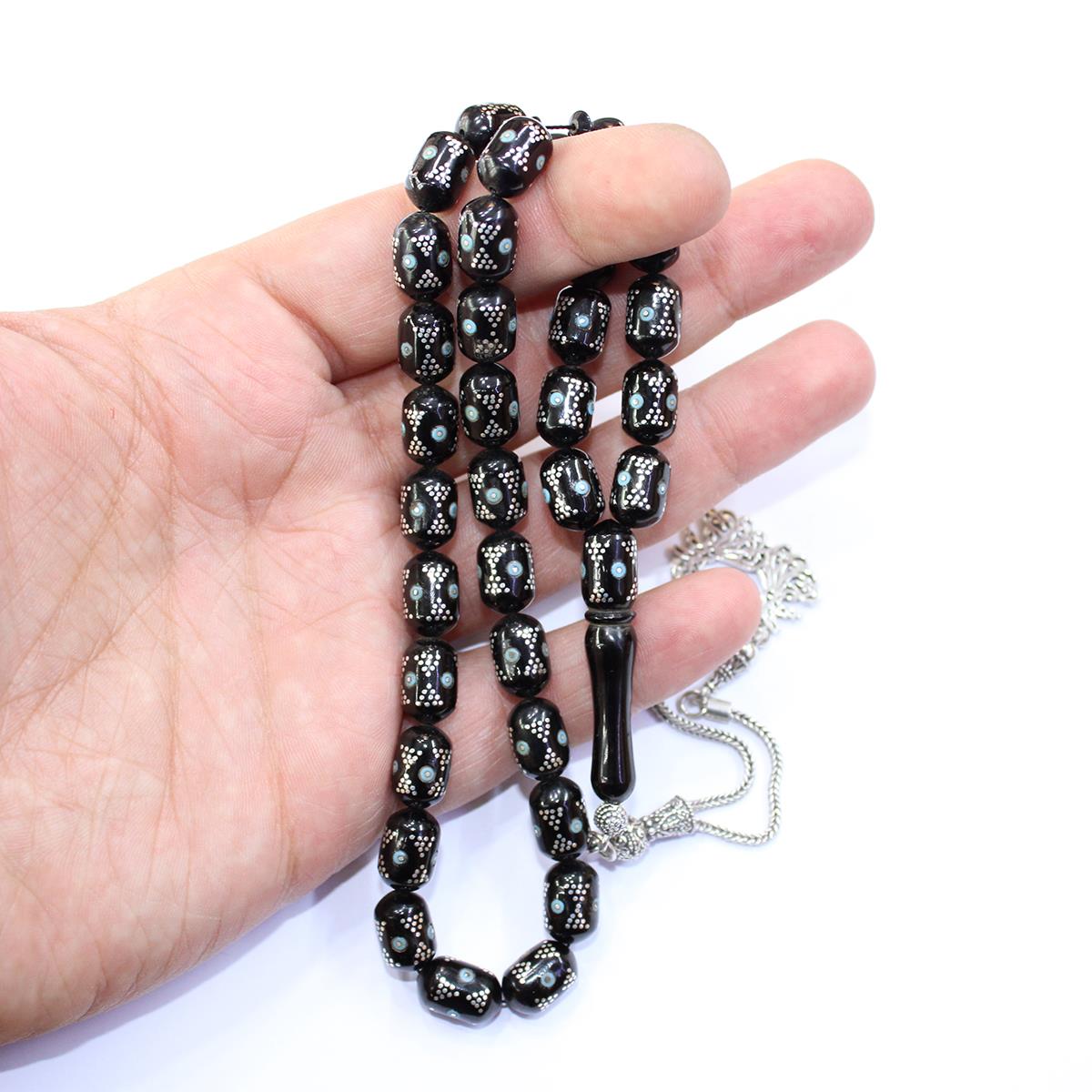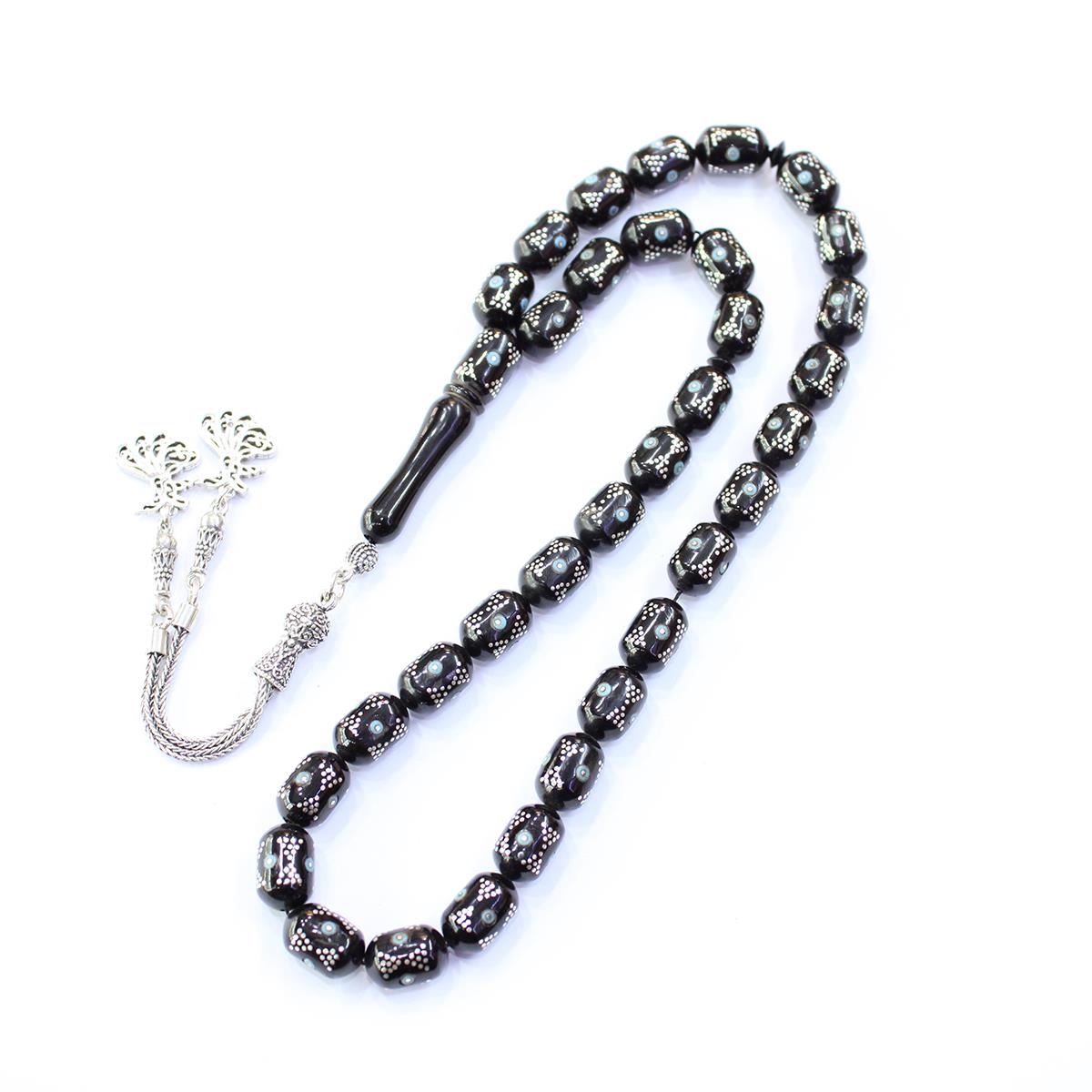 Papyon Firuze İşlemeli Oltu Taşı Tespih 8*12 (mm)