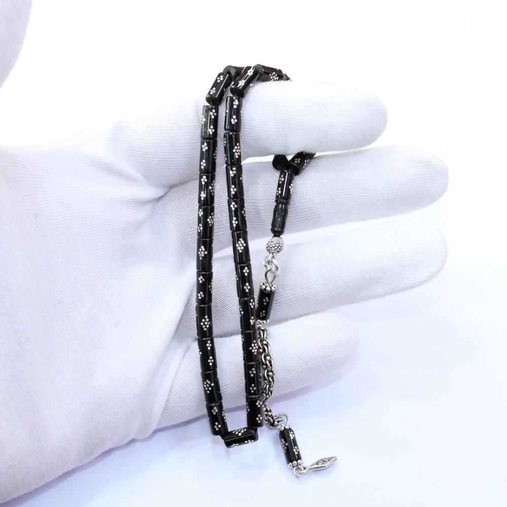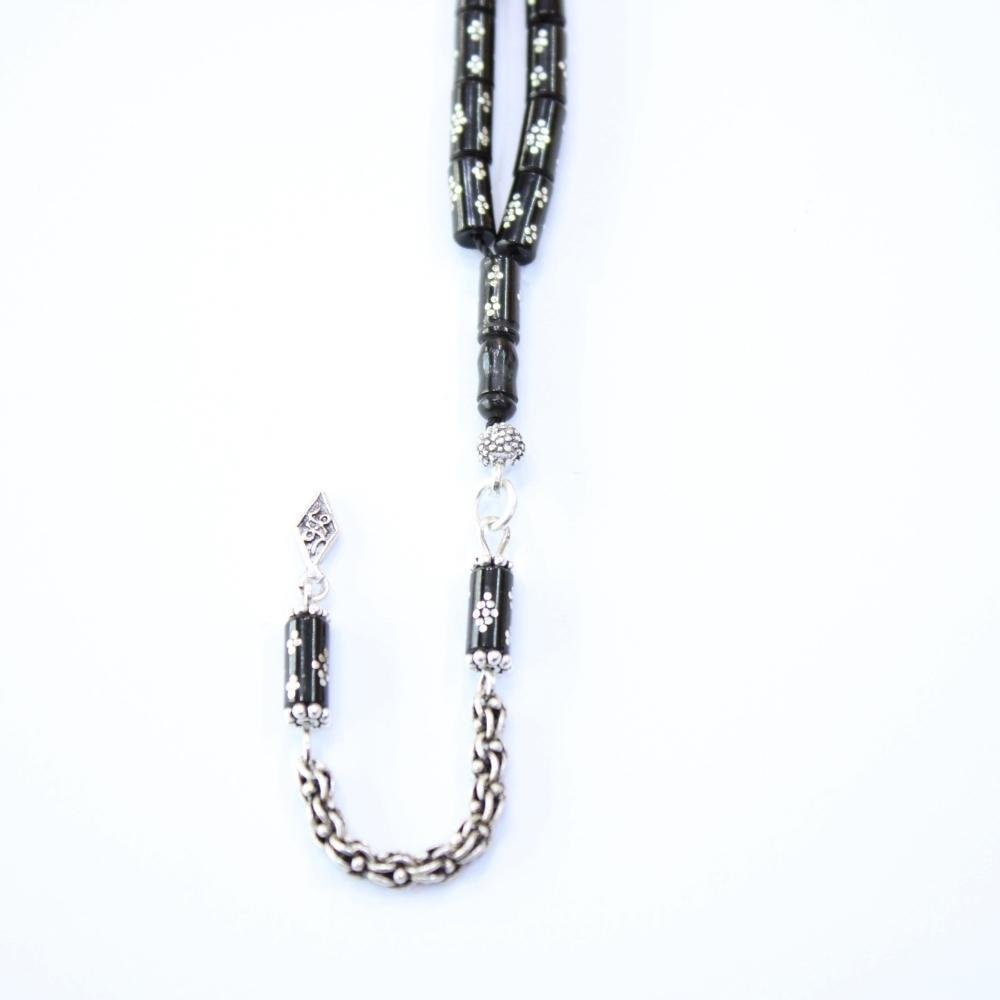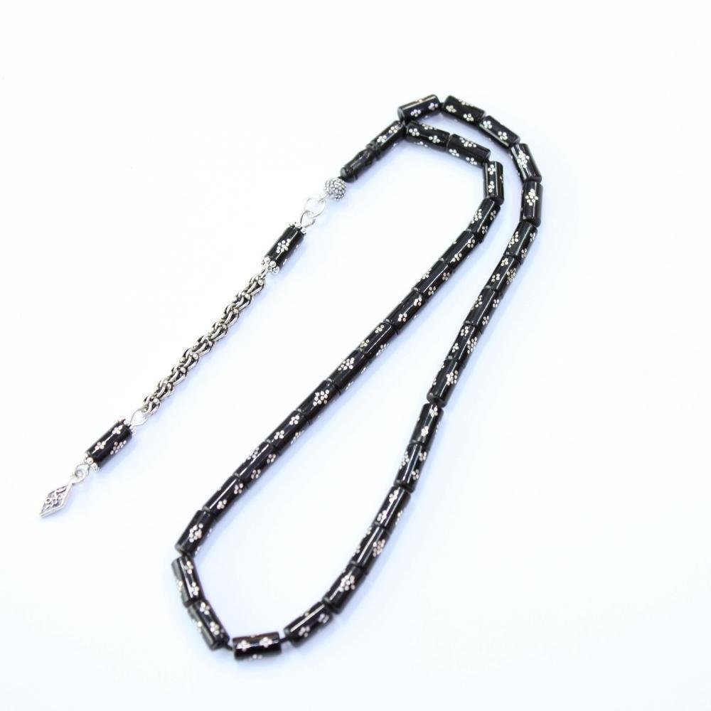 Papyon İşlemeli Kesme Oltu Taşı Tespih 4,5*8,5 (mm)