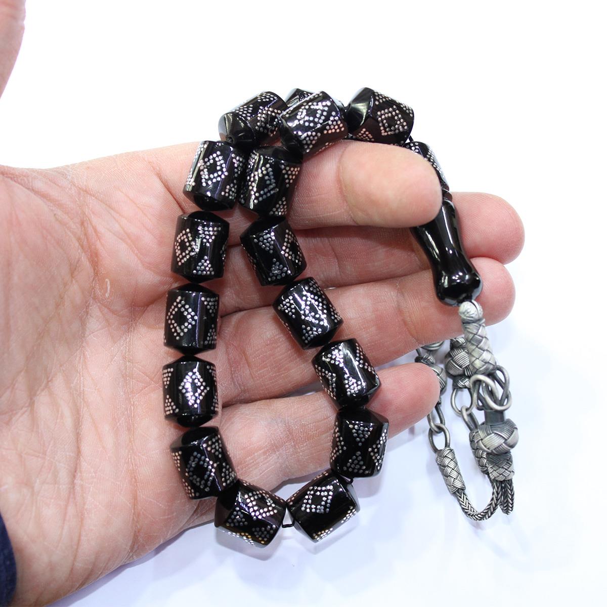 Papyon İşlemeli Maskot Oltu Taşı Tespih 12*15 (mm)