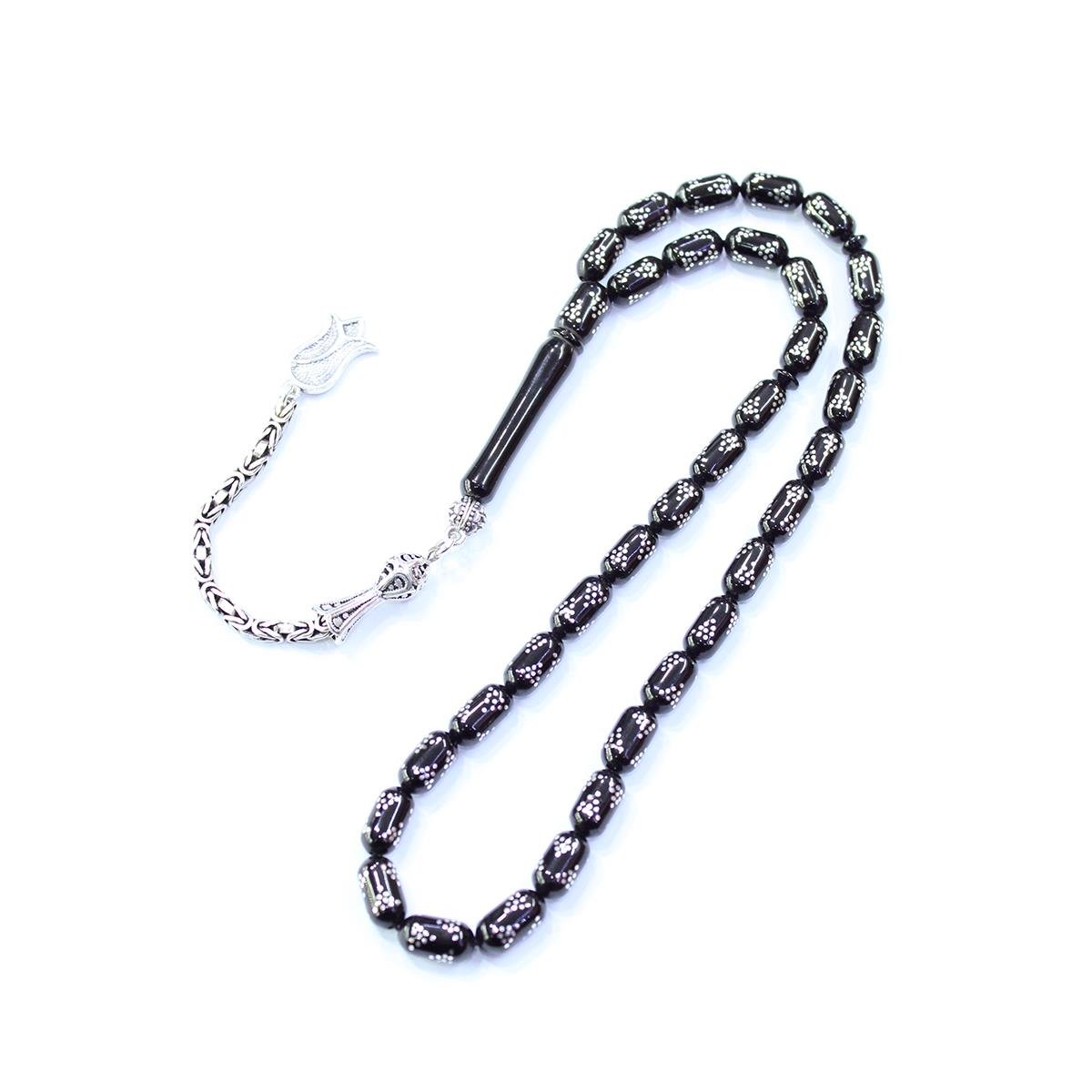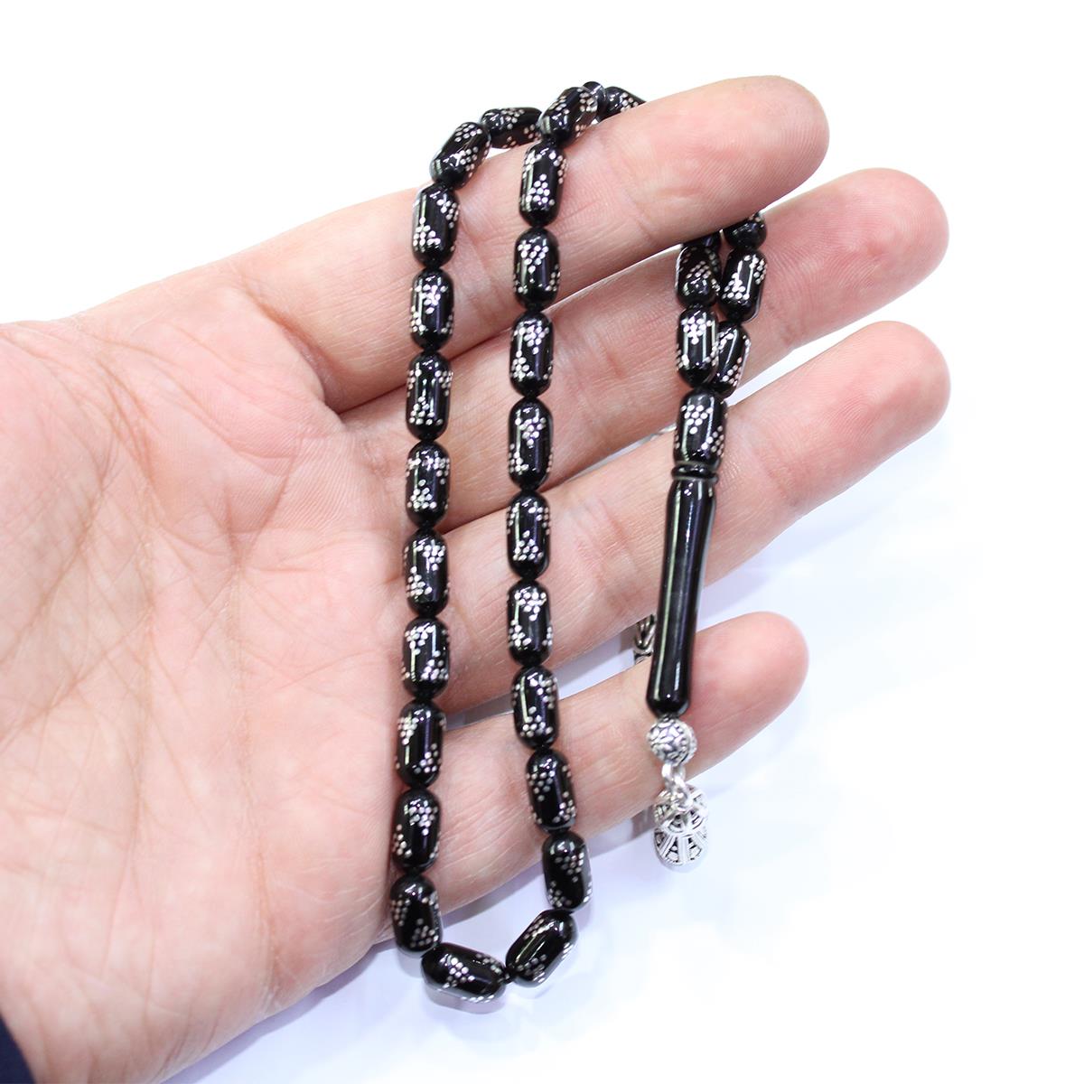Piramid İşlemeli Kapsül Oltu Taşı Tespih 5,5*10 (mm)
