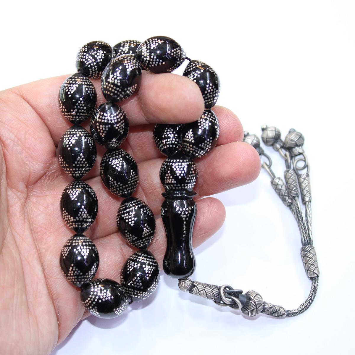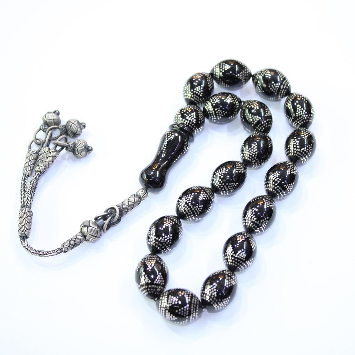 Piramid İşlemeli Maskot Oltu Taşı Tespih 13*18 (mm)