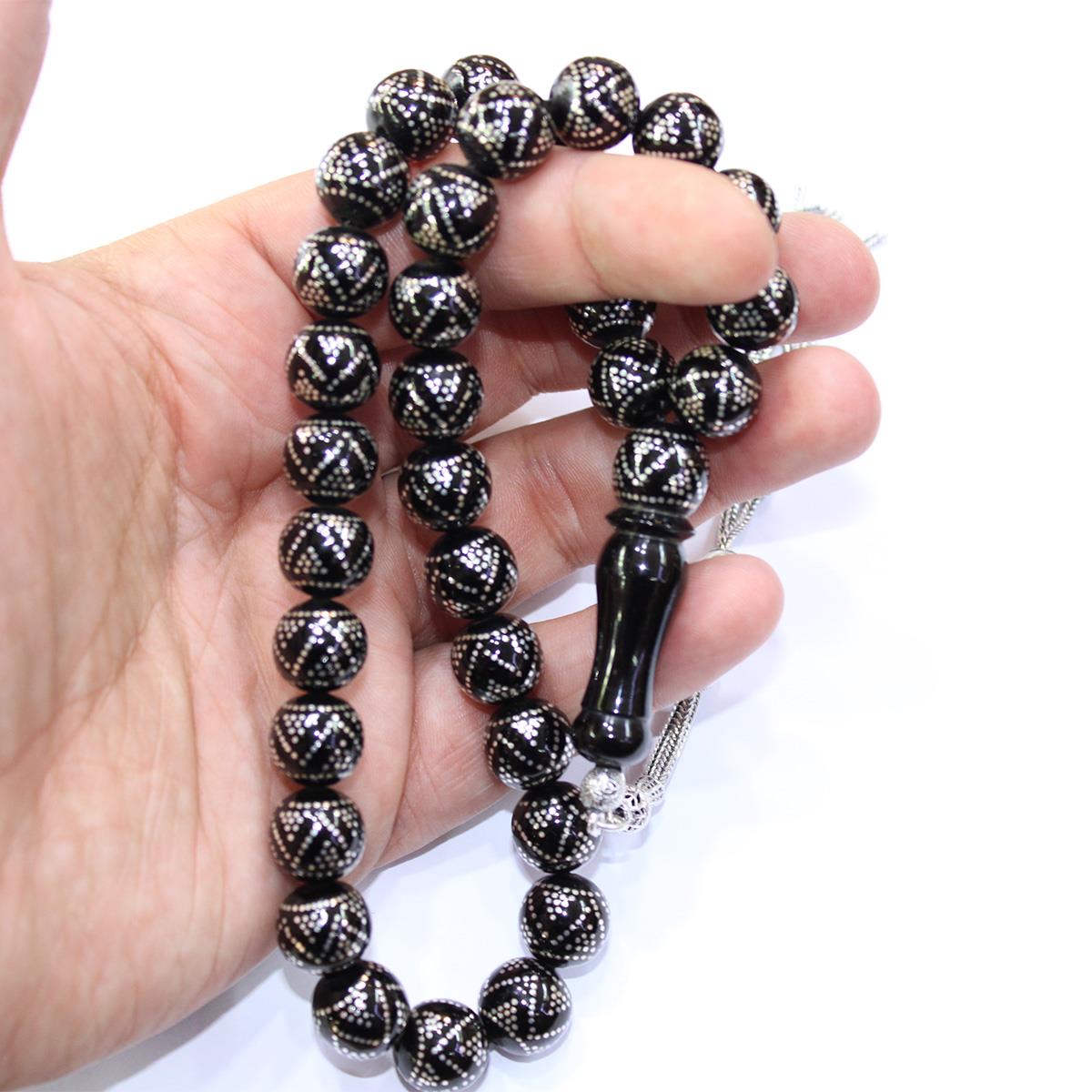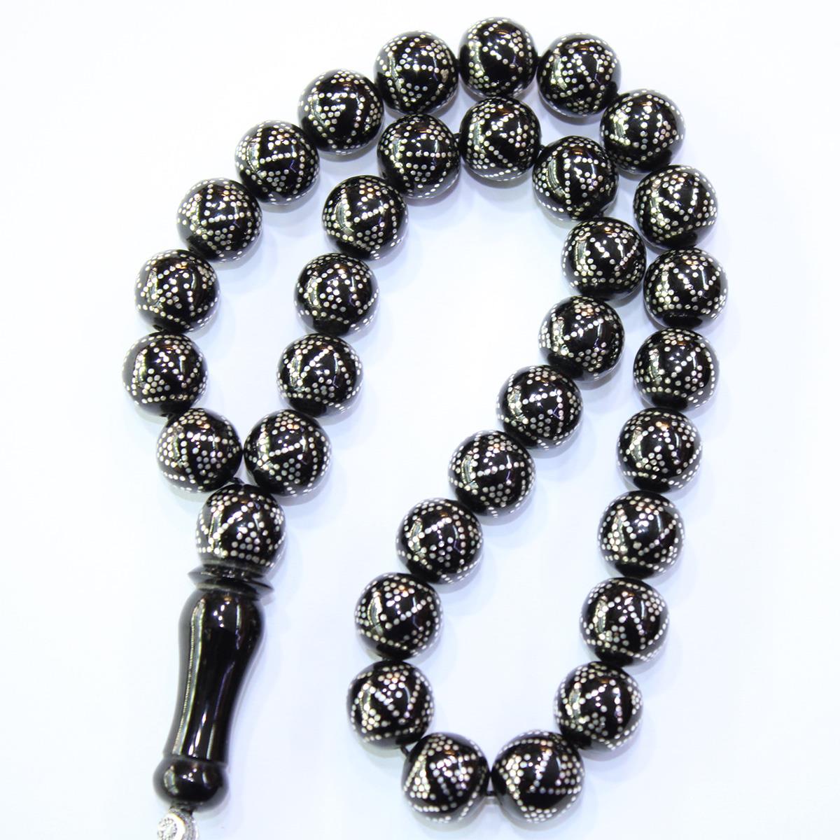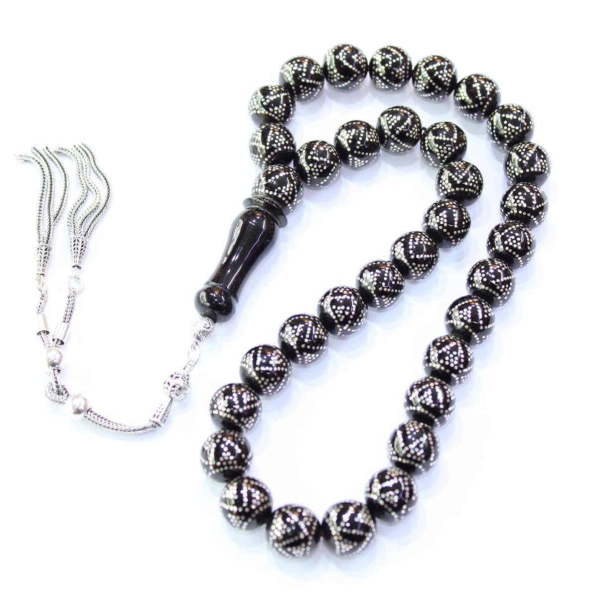Piramid İşlemeli Oltu Taşı Tespih 11,5 (mm)