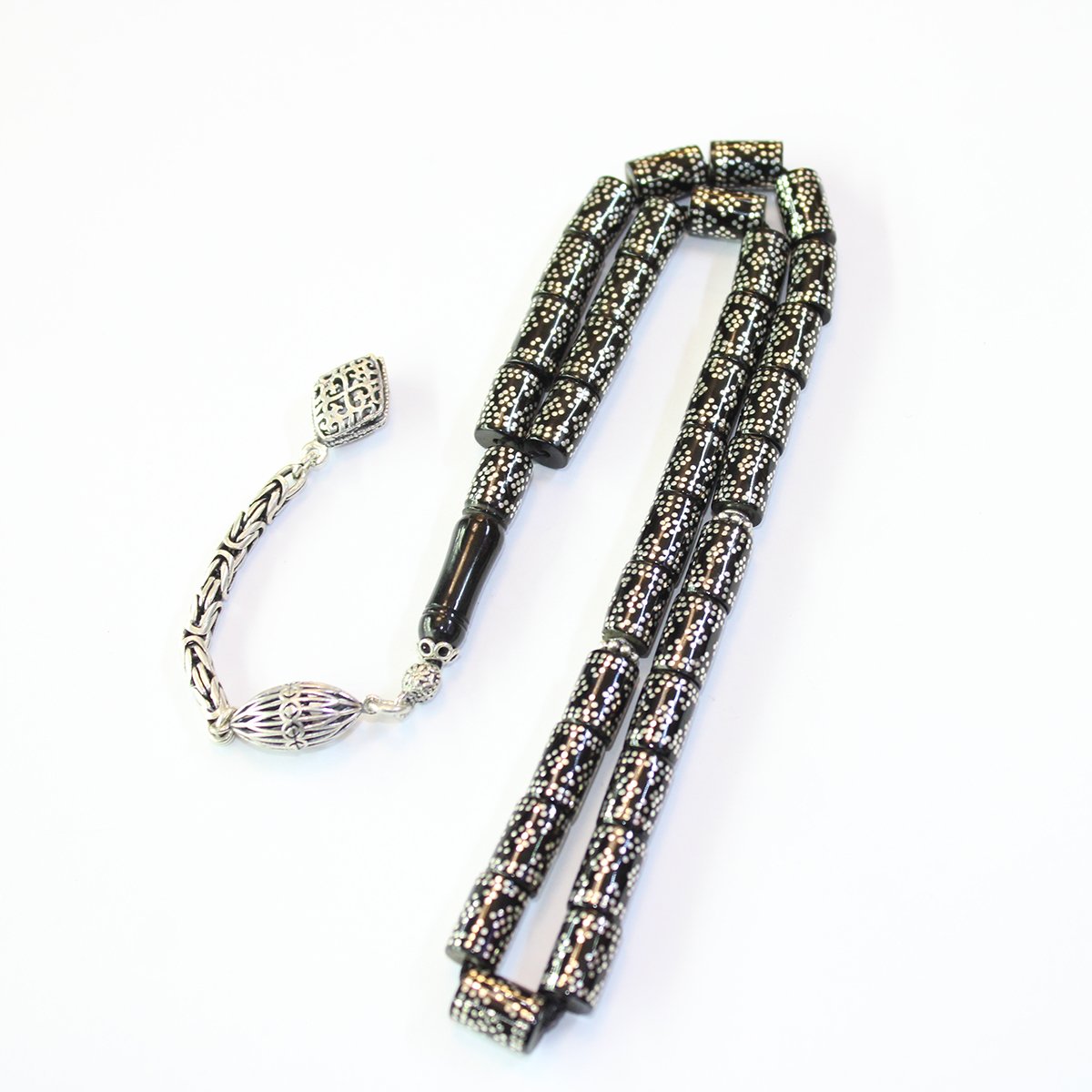 Piramit Baklava İşlemeli Kesme Oltu Taşı Tespih 6,5*10 (mm)