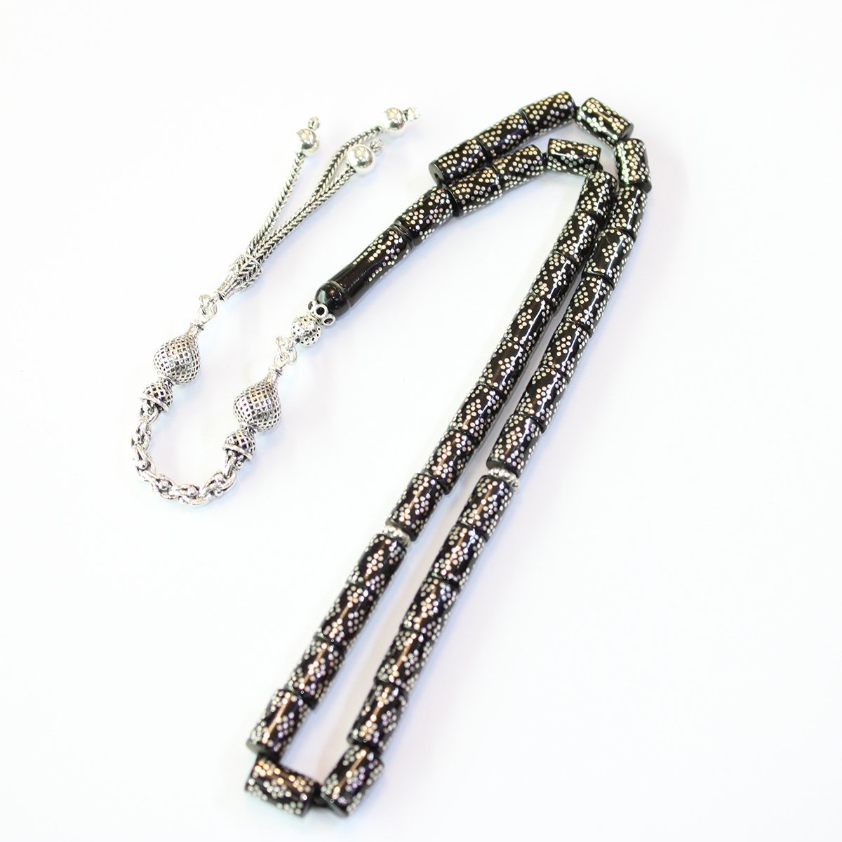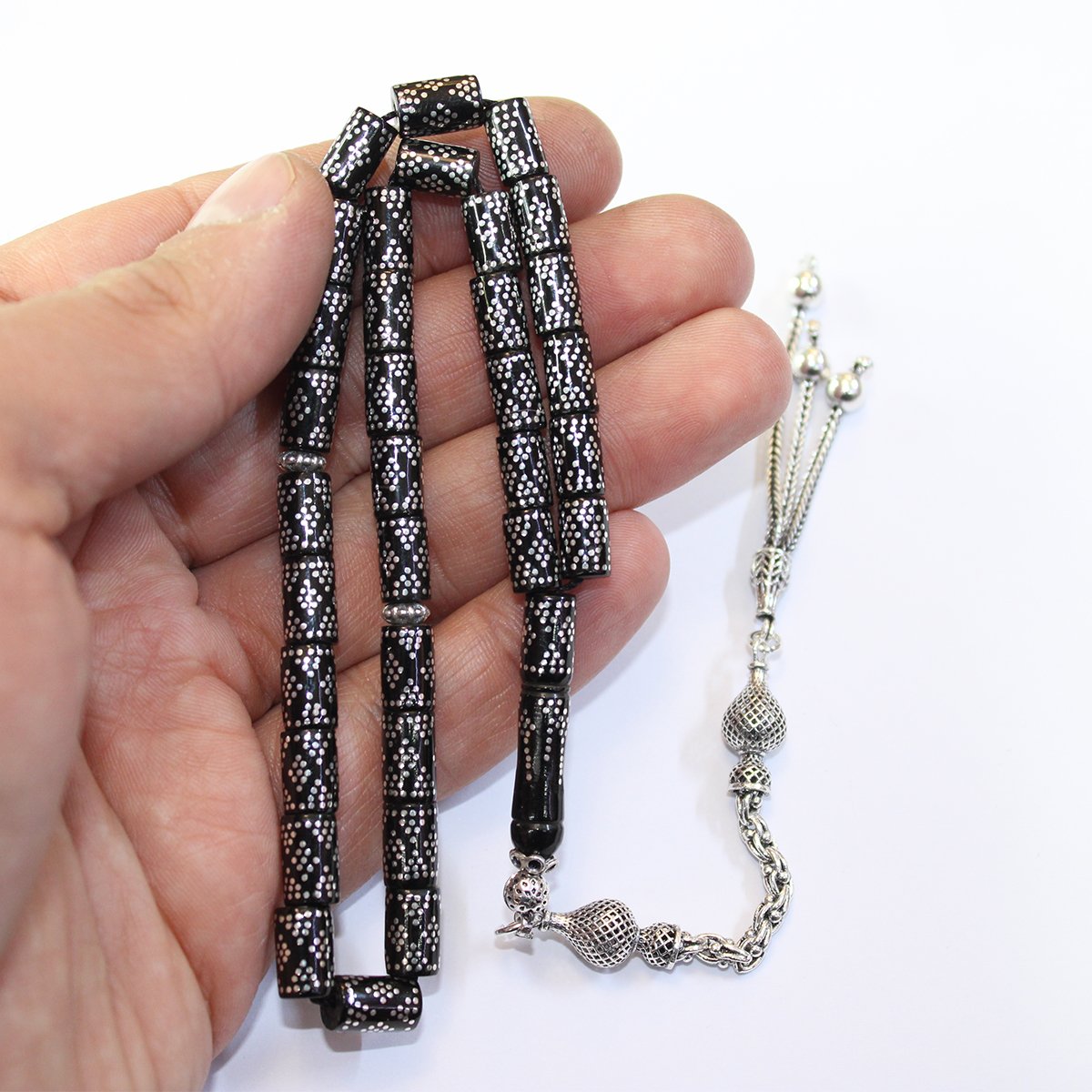 Piramit Baklava İşlemeli Kesme Oltu Taşı Tespih 6*9 (mm)
