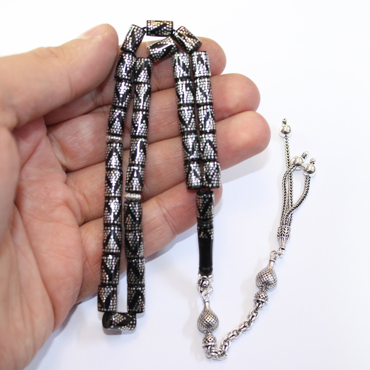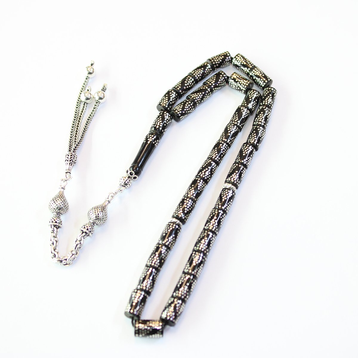 Piramit İşlemeli Kesme Oltu Taşı Tespih 6*9,5 (mm)