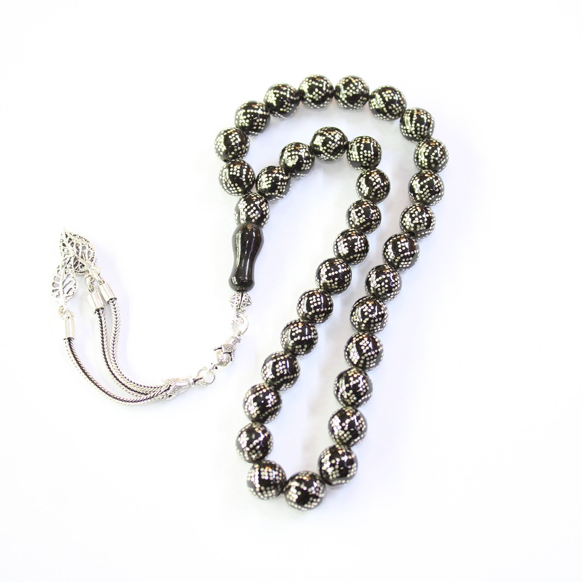 Sarmal Dörtlü İşlemeli Oltu Taşı Tespih 8,5 (mm)