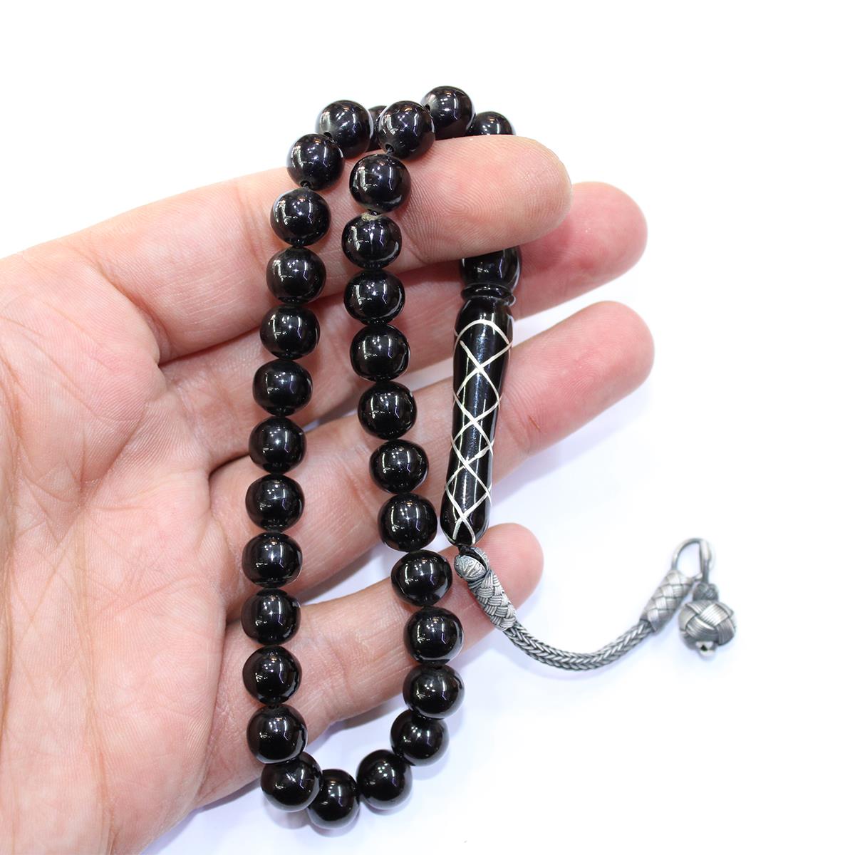 Sarmal İşleme İmameli Oltu Taşı Tespih 8,5 (mm)