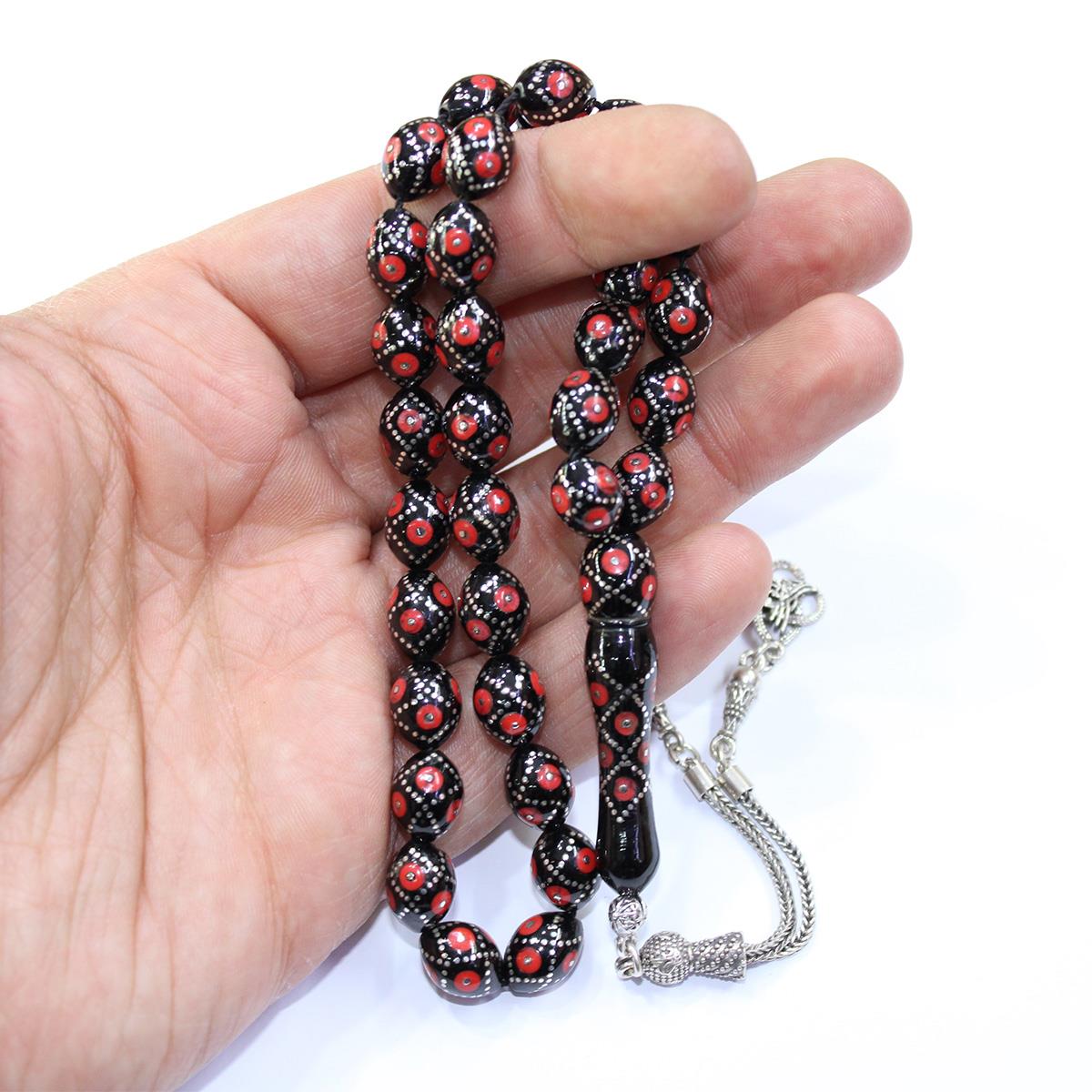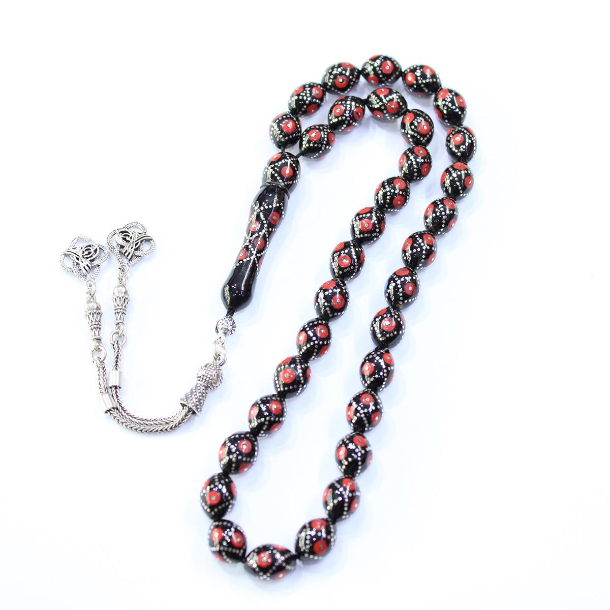 Sarmal Mercan İşlemeli Oltu Taşı Tespih 8*11 (mm)