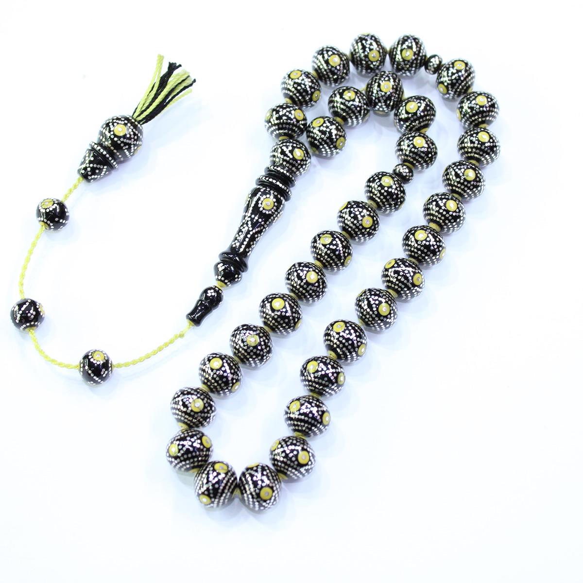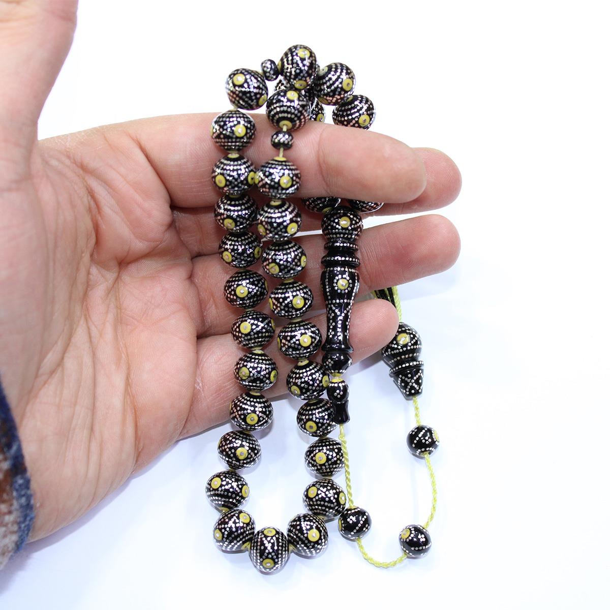 Satürn Model İşlemeli Oltu Taşı Tespih 11 (mm)