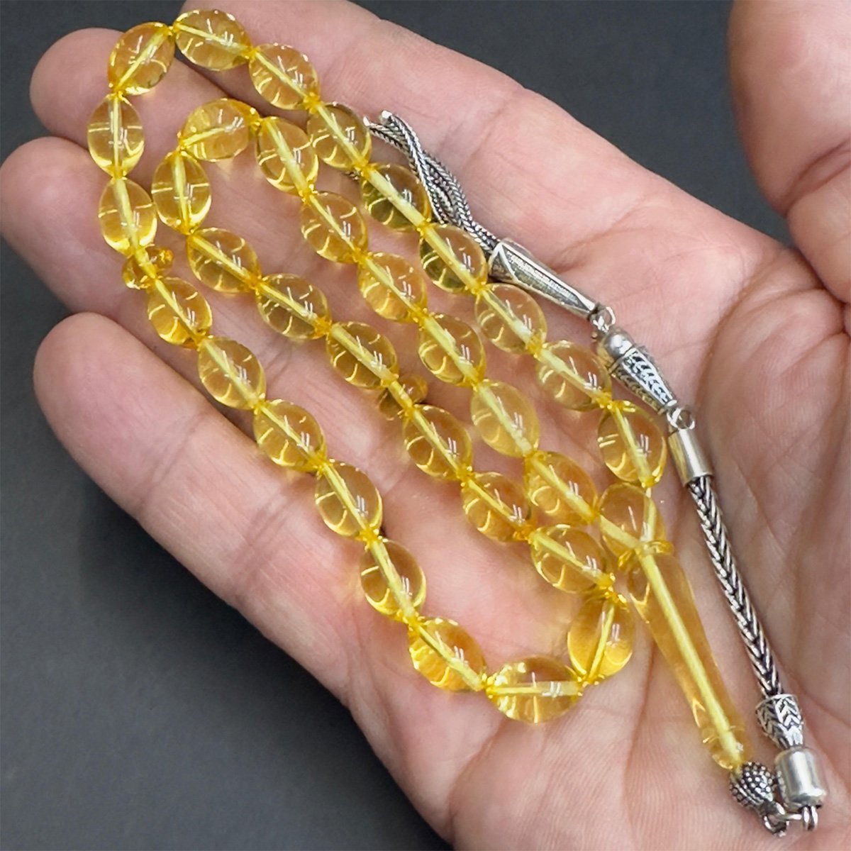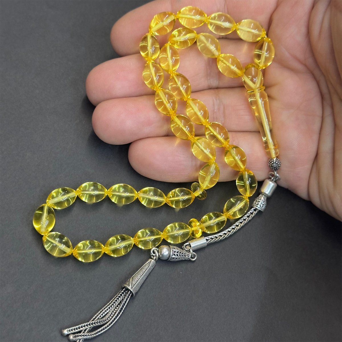 Şeffaf Litvanya Damla Kehribar Beyzi Tespih 7*11 (mm)-2