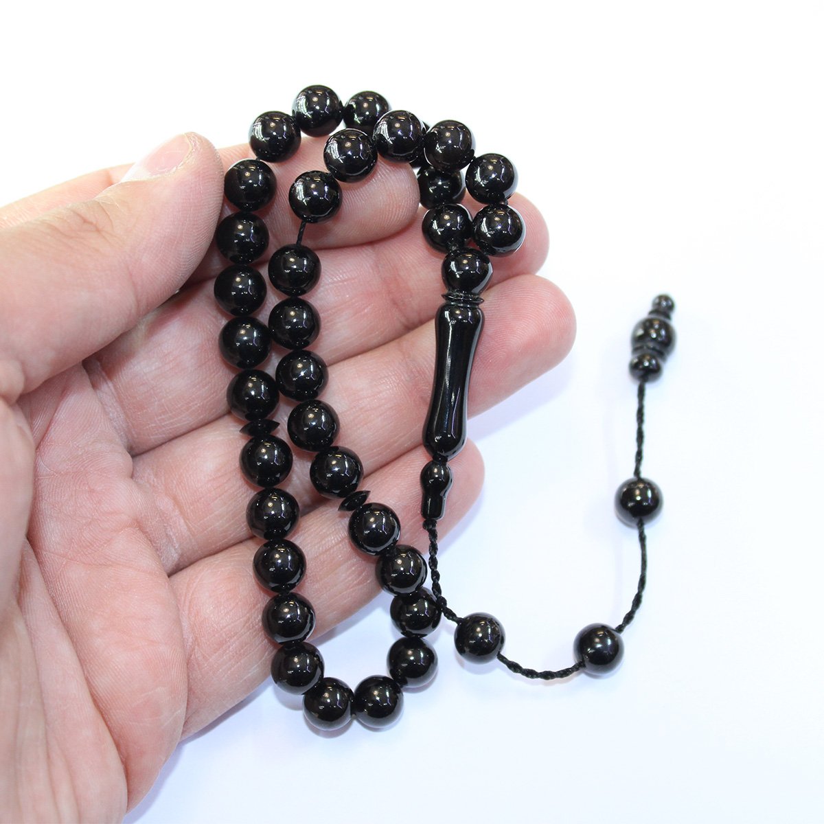 Sistem Püsküllü Oltu Taşı Tespih Küre Kesim 7,5 (mm)