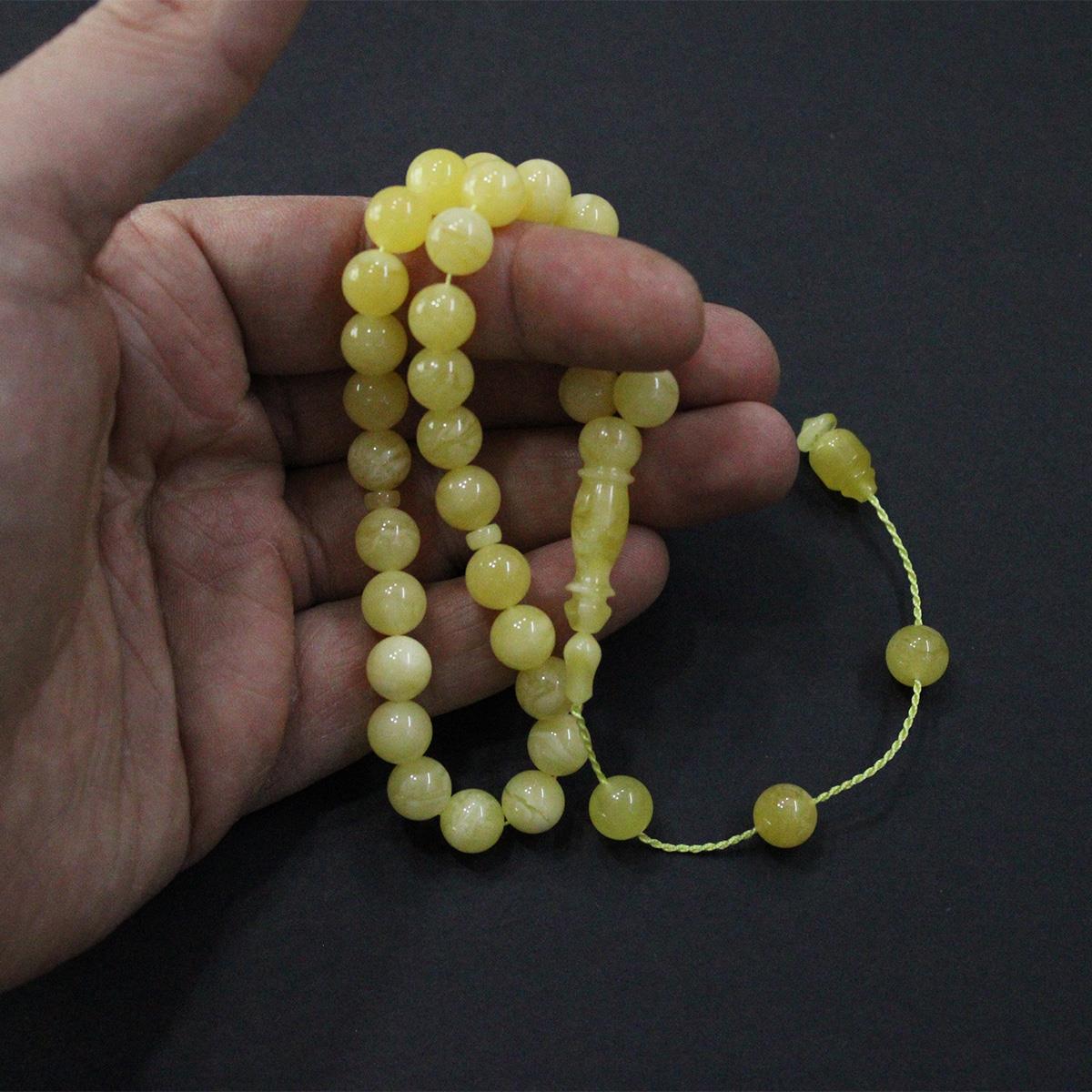 Kehribar taşı sanılanın aksine bir mücevher değil 40 milyon yıl önce ölen birçam türü olan Pinus succinifera ağaçlarının fosilleşmiş reçinesidir. Öyle ki kehribarlar, tarih öncesi böcekleri bile içinde saklamıştır. İnsanların binlerce yıldır, deniz kıyılarından, akarsulardan, alüvyon ve hatta bataklıklar arasından topladıkları bu değerli taş yeryüzünden silinen onlarca farklı ağaç türünün insanlığa armağanı olmuştur. 33 tanesi de çeşitli büyüklüklerde, bir kaç milyon yaşında haşere ihtiva eden kaliningrad damla kehribar tespih.