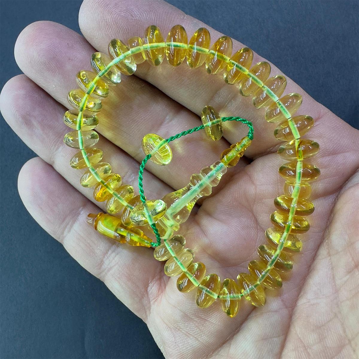Kehribar taşı sanılanın aksine bir mücevher değil 40 milyon yıl önce ölen birçam türü olan Pinus succinifera ağaçlarının fosilleşmiş reçinesidir. Öyle ki kehribarlar, tarih öncesi böcekleri bile içinde saklamıştır. İnsanların binlerce yıldır, deniz kıyılarından, akarsulardan, alüvyon ve hatta bataklıklar arasından topladıkları bu değerli taş yeryüzünden silinen onlarca farklı ağaç türünün insanlığa armağanı olmuştur. 33 tanesi de çeşitli büyüklüklerde, bir kaç milyon yaşında haşere ihtiva eden kaliningrad damla kehribar tespih.