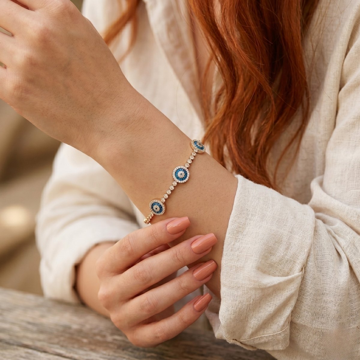 Su Yolu Nazarlık Gümüş Bileklik Rose