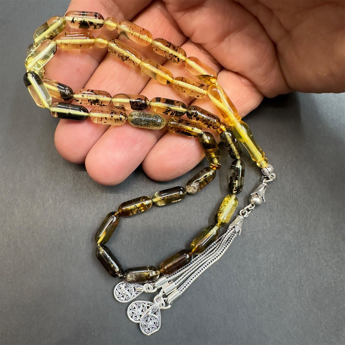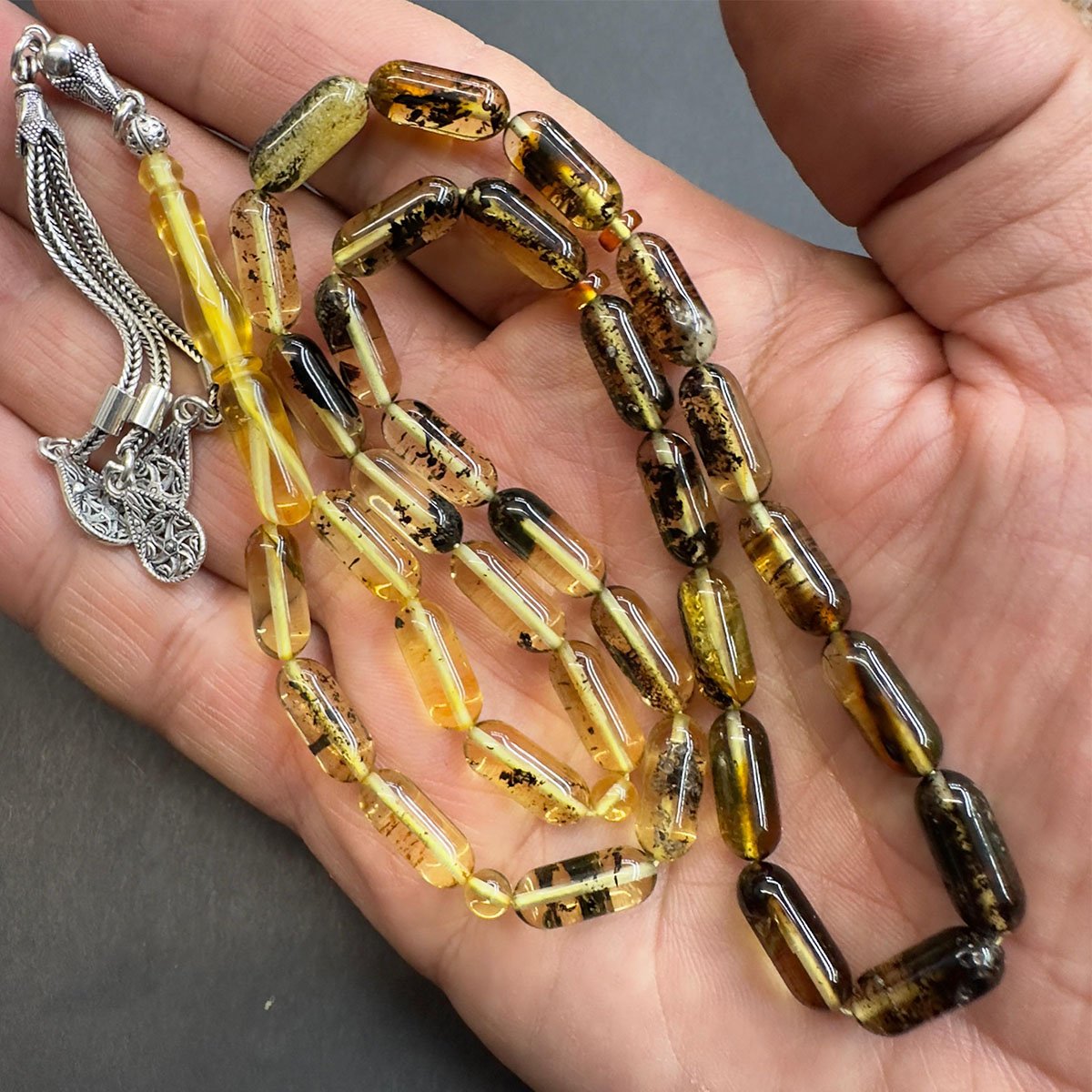 Toprak Fosilli Kaliningrad Damla Kehribar Tespih 5,5*13 (mm)