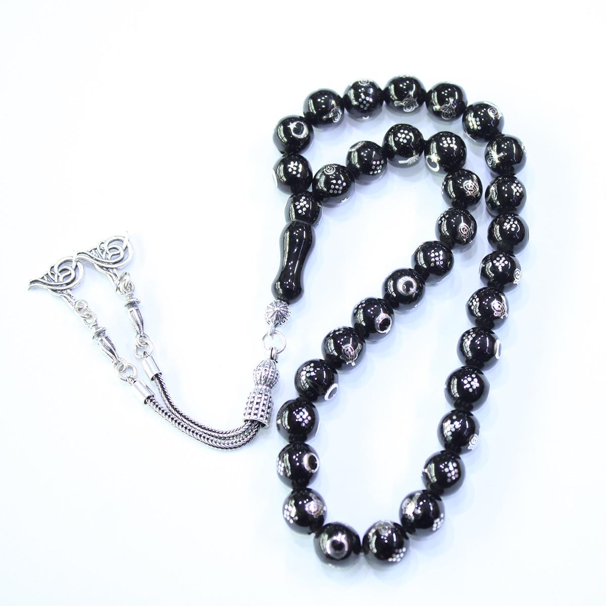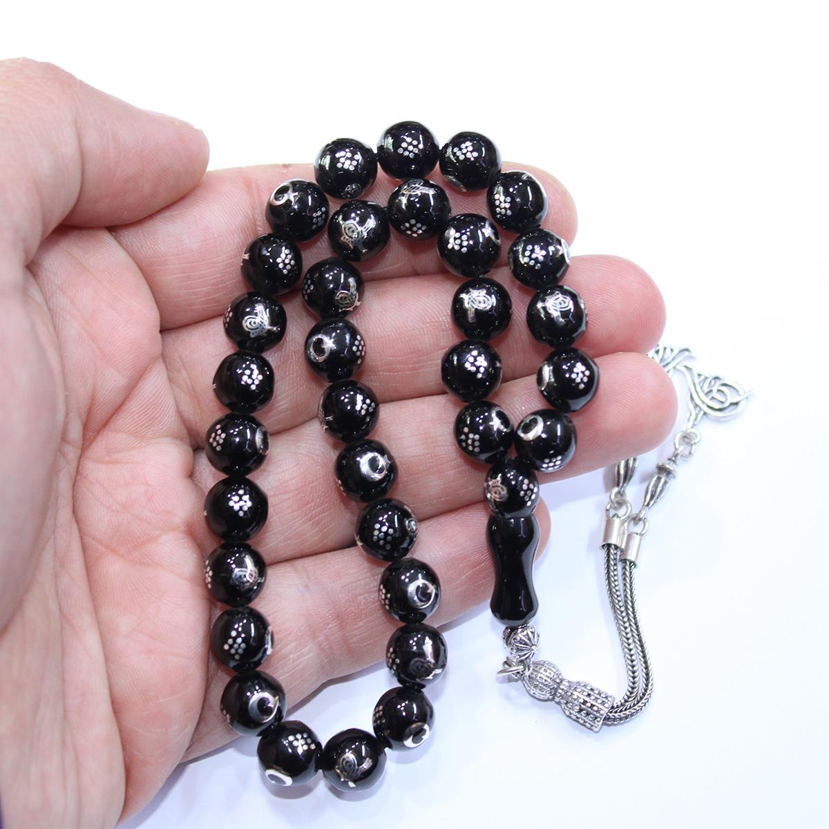 Tuğra & Ay Yıldız İşlemeli Oltu Taşı Tespih 9 (mm)
