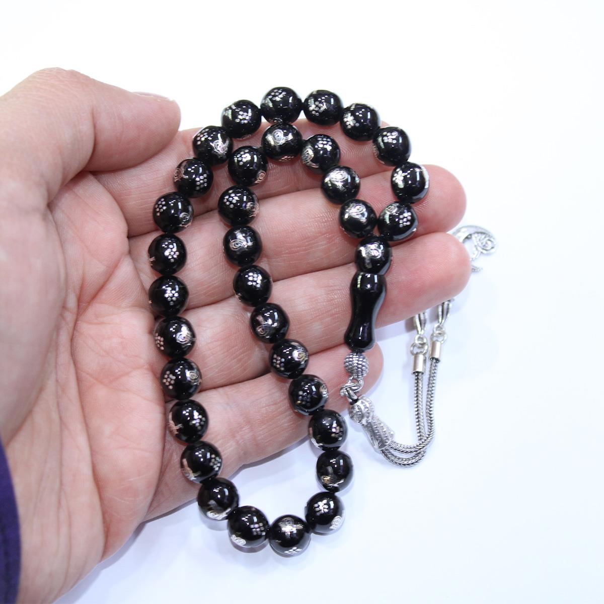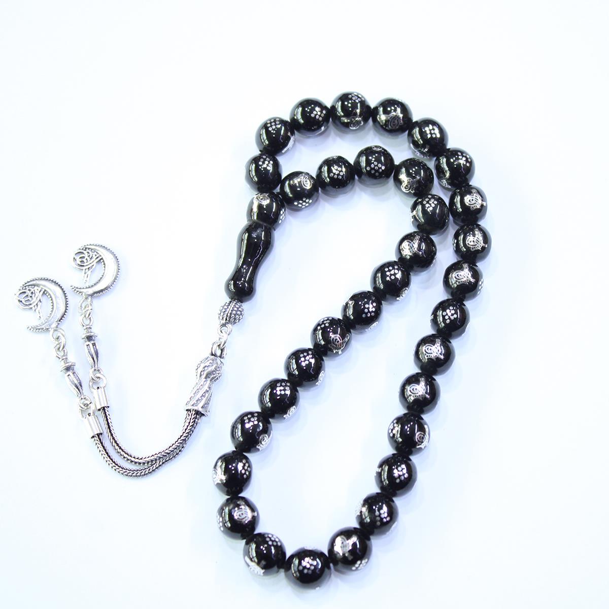 Tuğra İşlemeli Oltu Taşı Tespih 9 (mm)