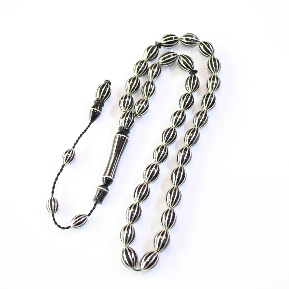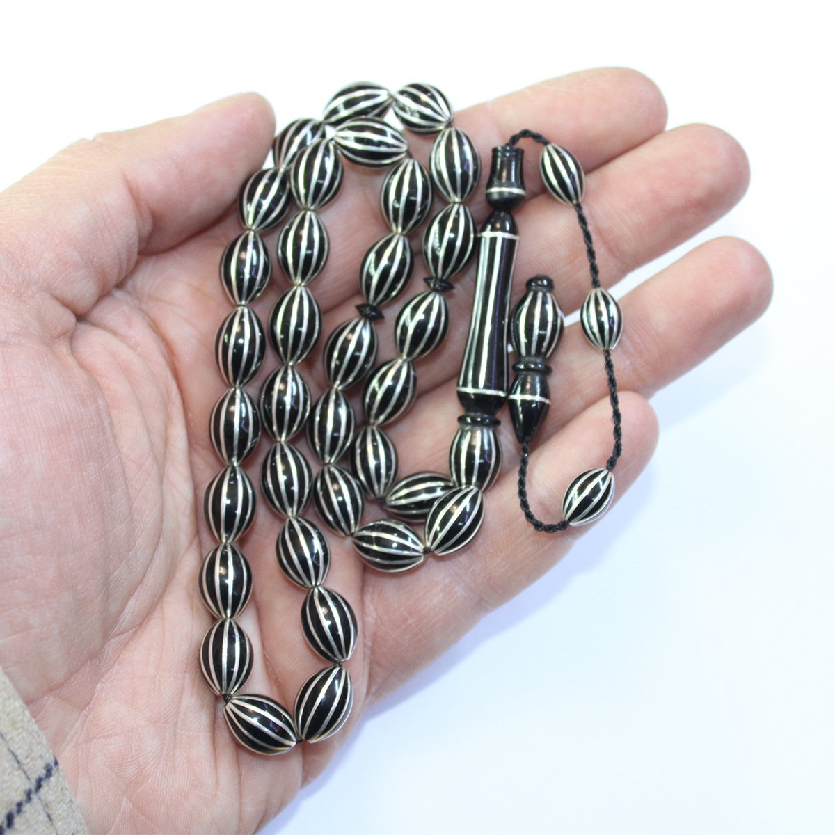 Sistemli 12 li Karpuz İşleme Oltu Taşı Tespih 8*12 (mm)