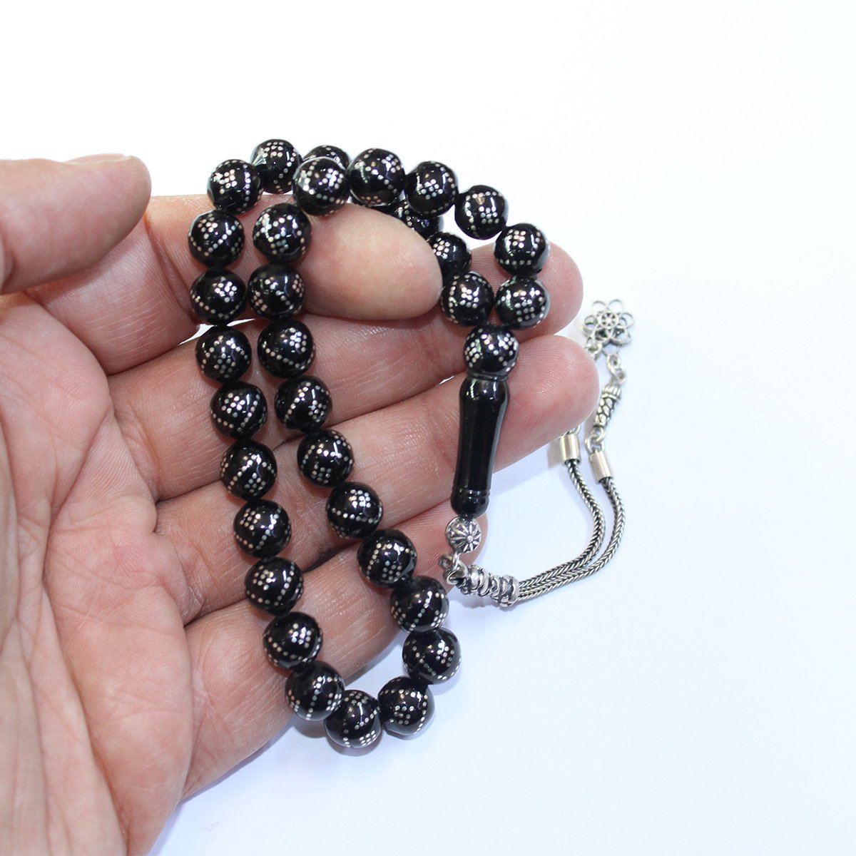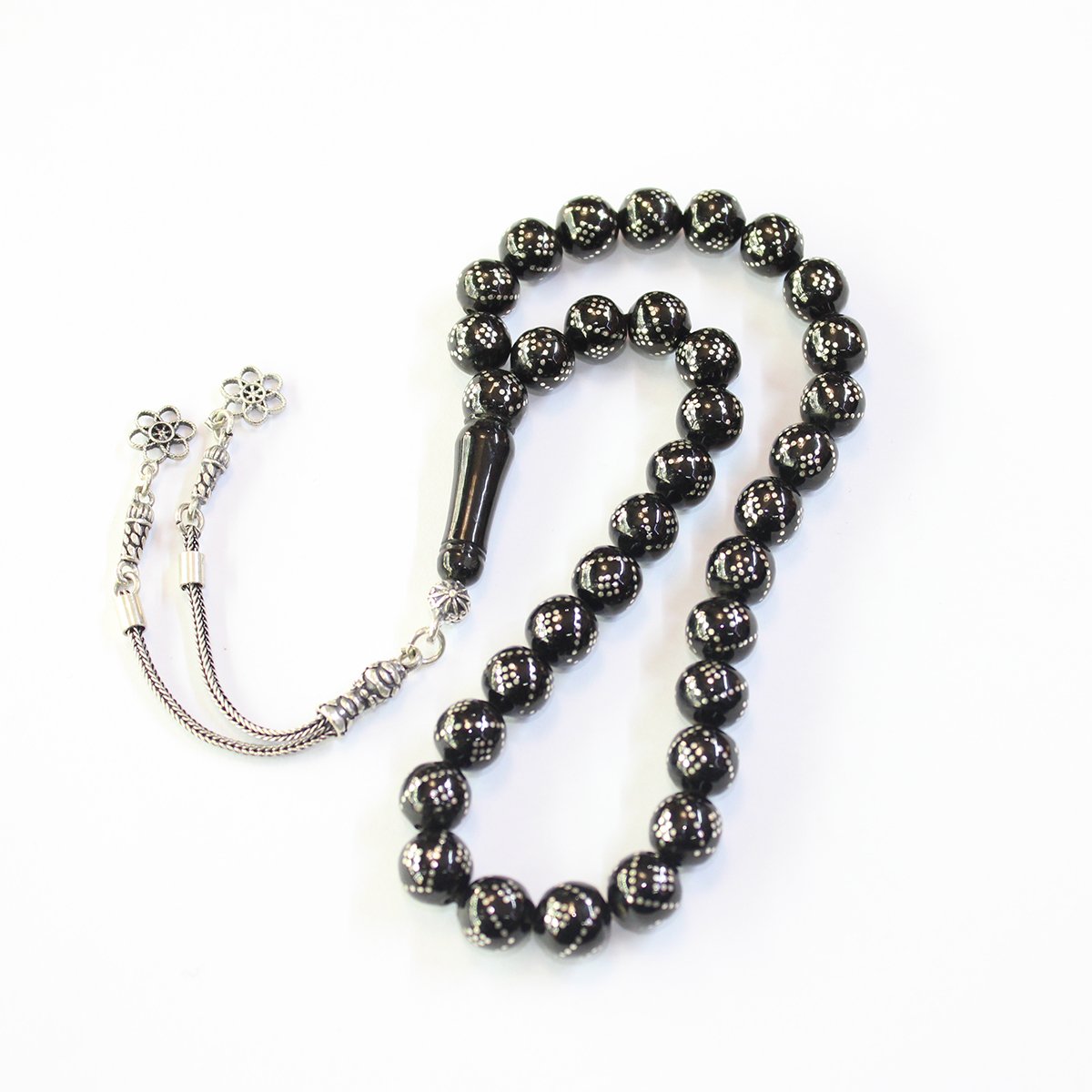 V Baklava İşlemeli Oltu Taşı Tespih 8,5 (mm)
