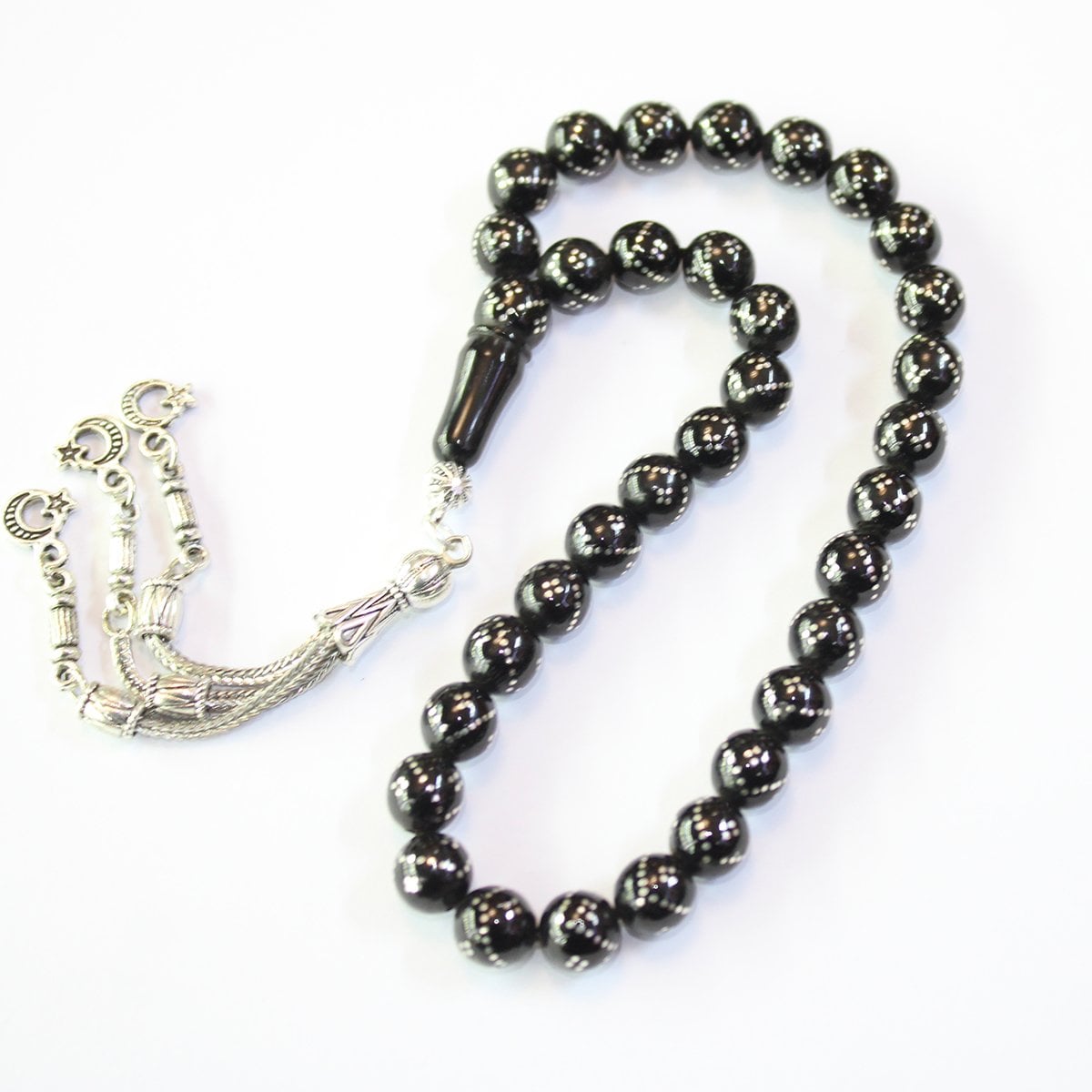 V Dörtlü İşlemeli Oltu Taşı Tespih 8,5 (mm)
