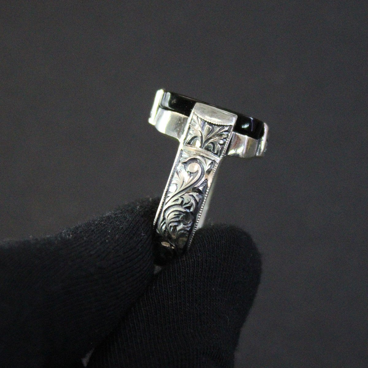 Yemen Akiği Kalem İşçiliği Gümüş Erkek Yüzük-1