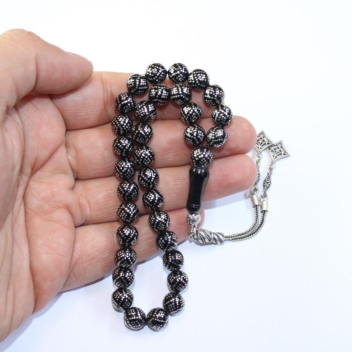 Yoğun Baklava İşlemeli Oltu Taşı Tespih 8,5 (mm)