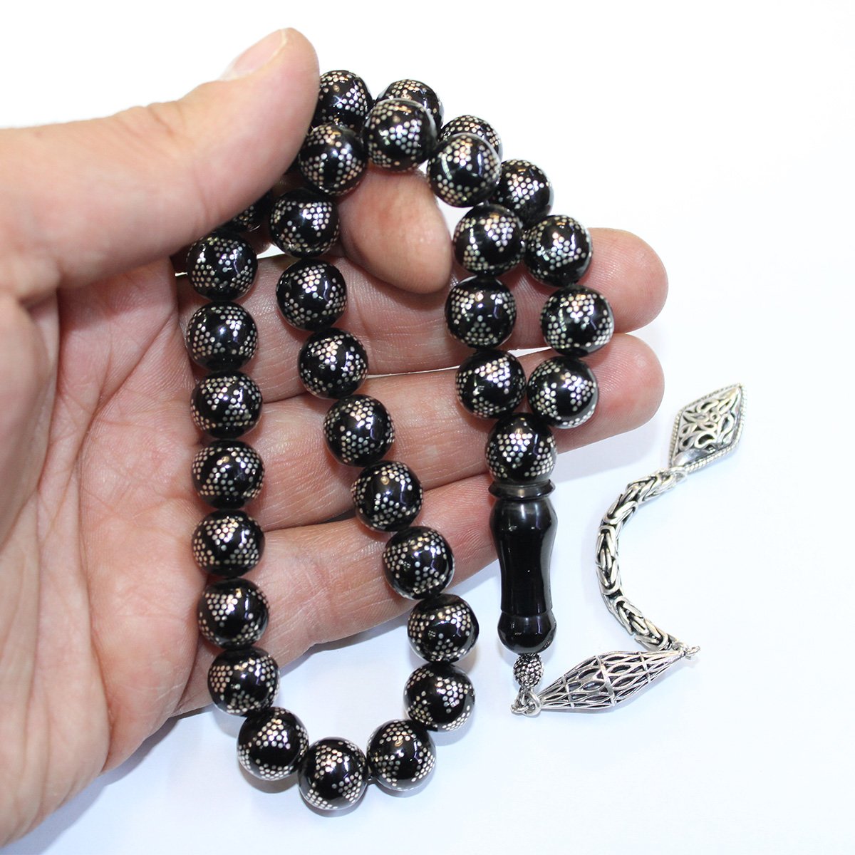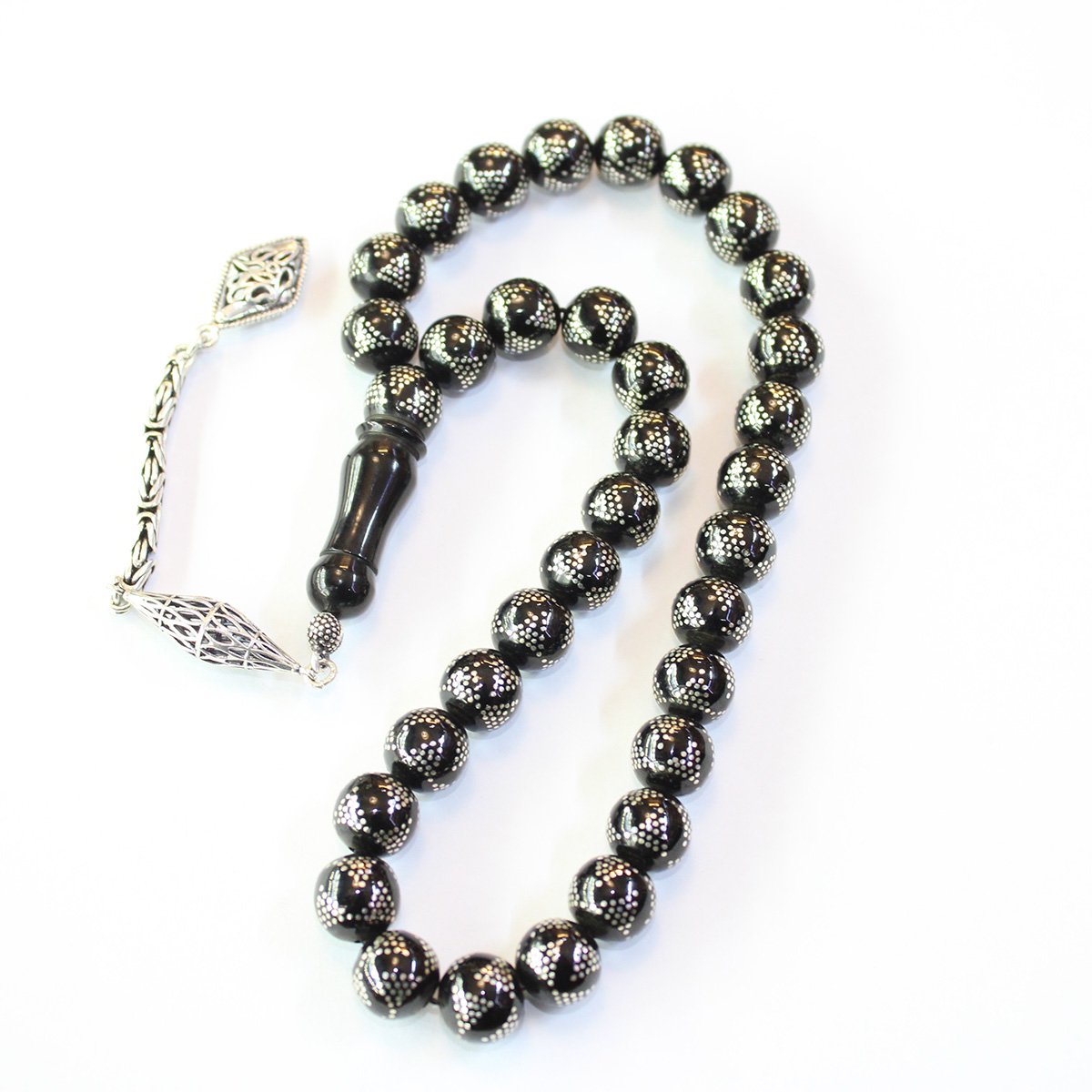 Yoğun Piramid İşlemeli Oltu Taşı Tespih 10,5 (mm)