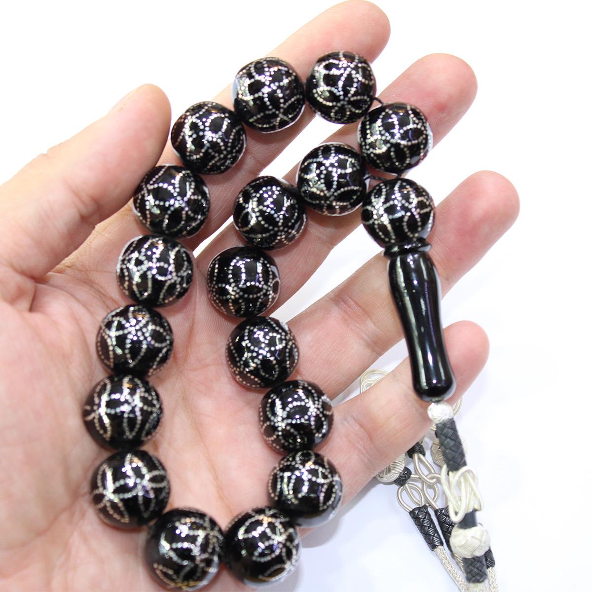 Yonca İşlemeli Maskot Oltu Taşı Tespih 16,5 (mm)