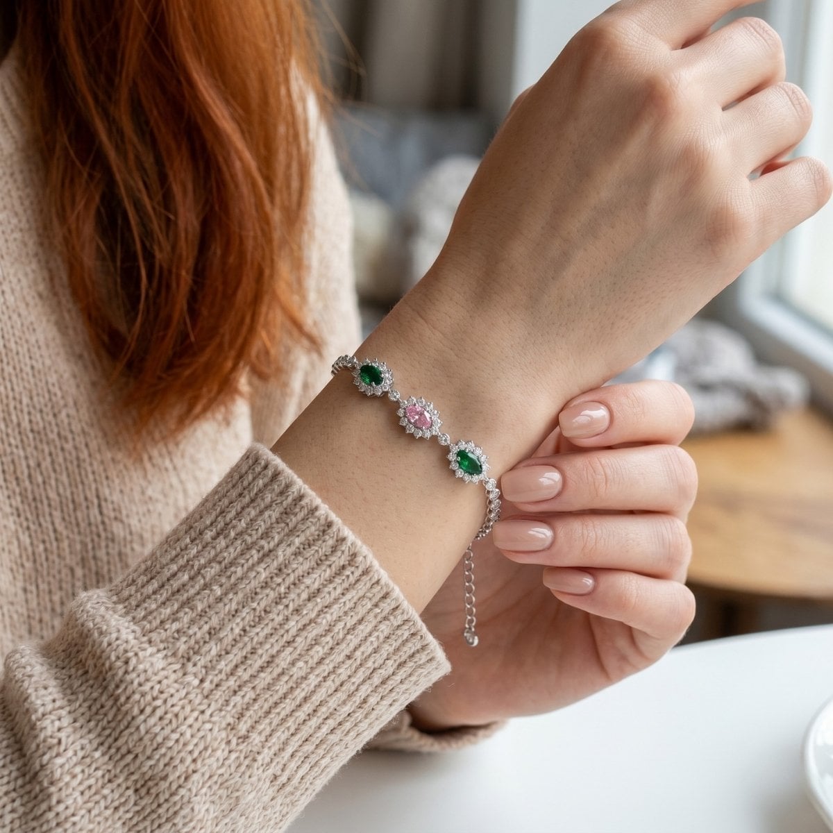 Zirkon Taşlı Gümüş Beyaz Bileklik