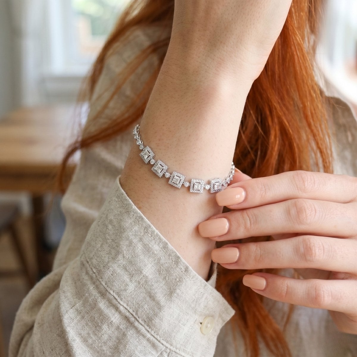 Zirkon Taşlı Gümüş Fuşya Bileklik