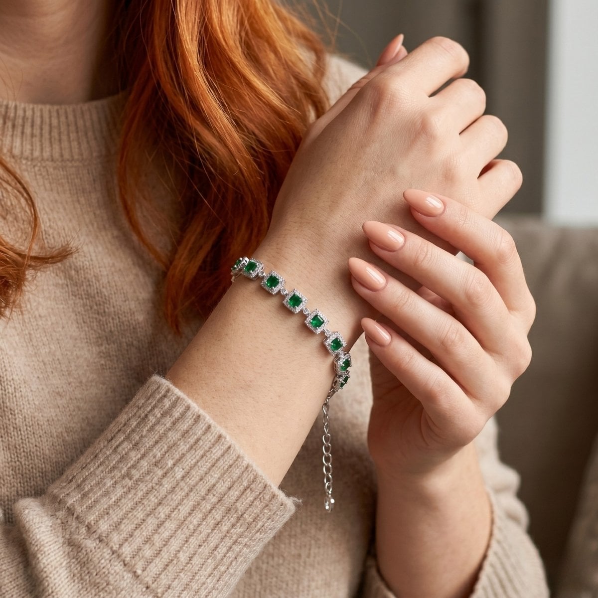 Zirkon Taşlı Gümüş Yeşil Bileklik