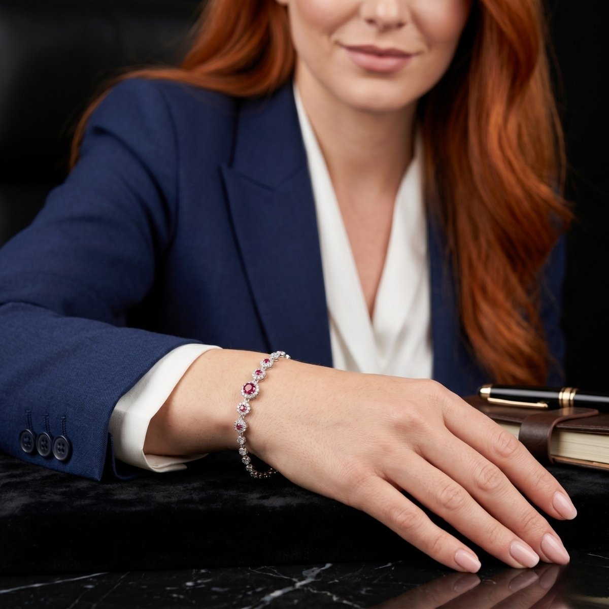 Zirkon Taşlı Kırmızı Gümüş Bileklik